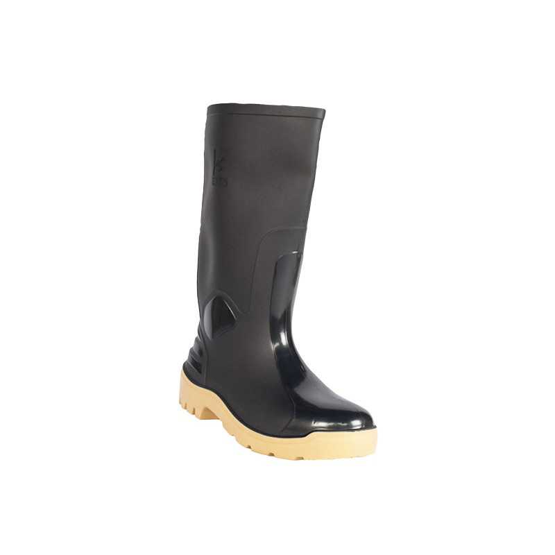 Caña: PVC sin nitrilo plastificado color negro con alta resistencia y flexibilidad 100% impermeable, reforzada con relieve en el empeine y contrafuerte. Protección del tobillo contra impacto lateral.