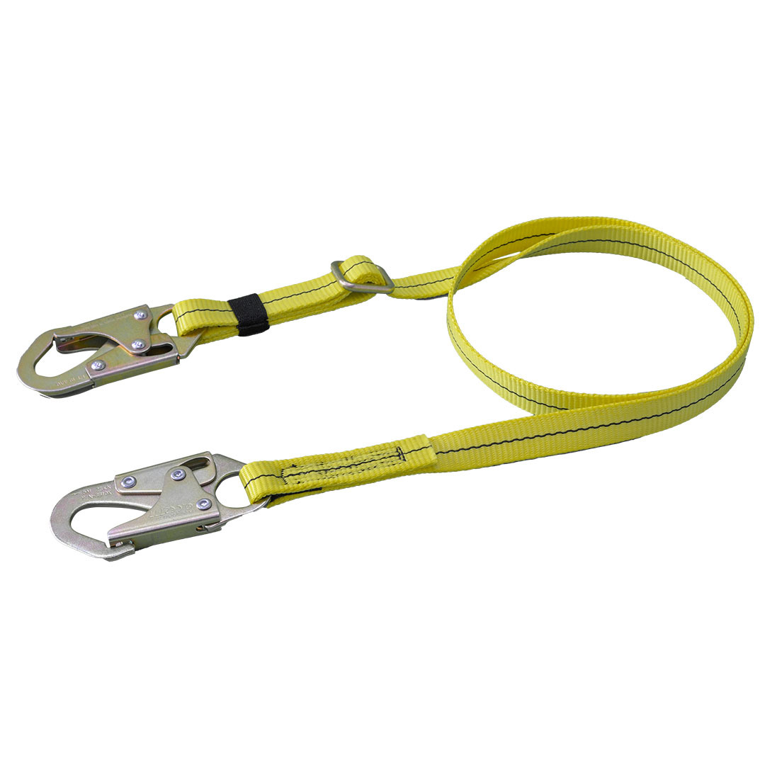 Eslinga de posición en reata graduable. Ganchos tipo americano de doble seguro apertura de 20 mm. Resistencia 22 kn (5.000 lb). Longitudes: (180 cm). Certificación ansi z 359. 1 – 2007 – ansi: a 10. 32 – 2012.