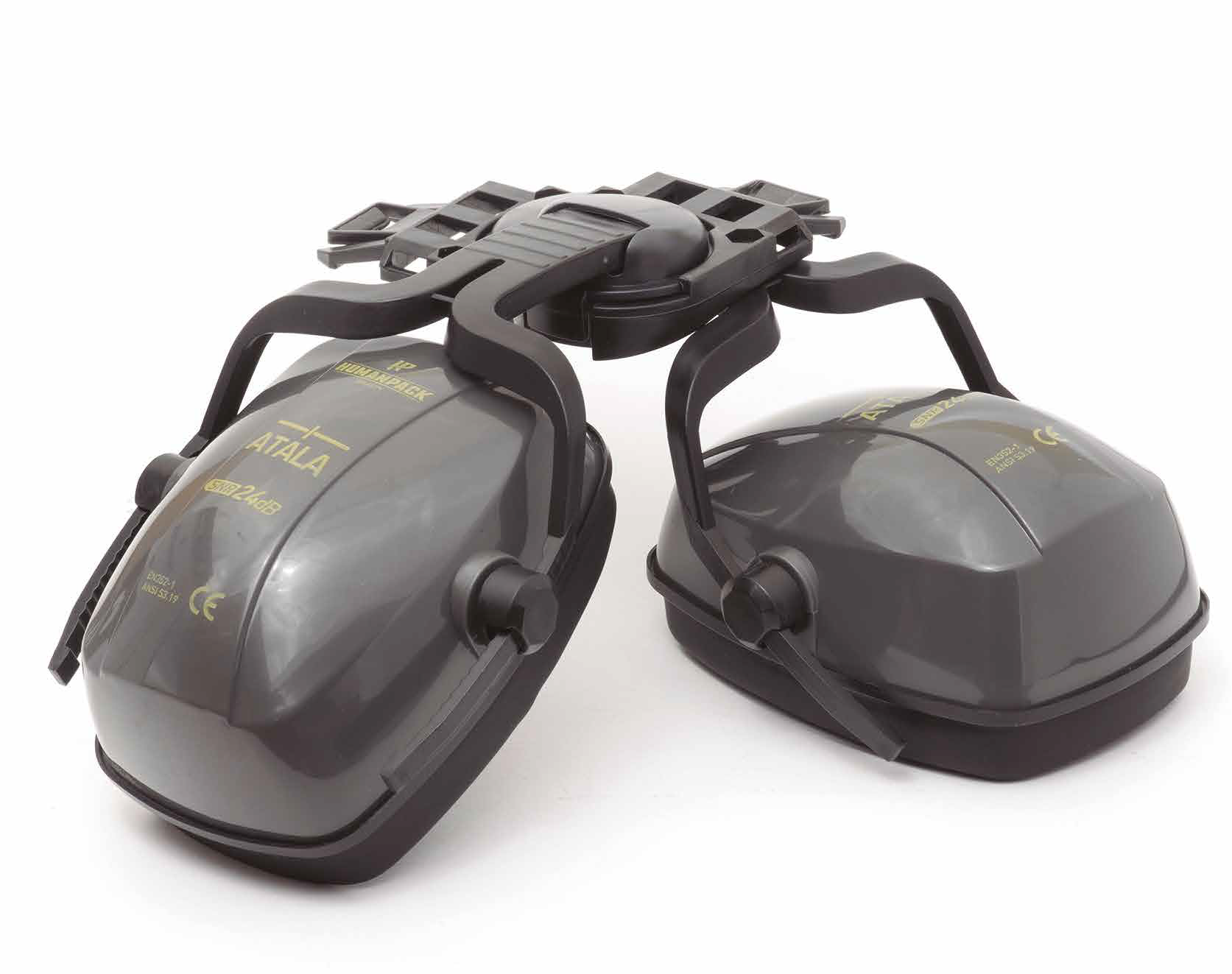 Protector auditivo ATALA tipo copa para ensamble a casco {NRR24 db} con sistema de acople universal que permite adaptarlo a una gran variedad de cascos. Copas fabricadas en ABS y policarbonato de alta resistencia al impacto y a los choques contra materiales contundentes .Almohadillas en espuma antialérgica. Los protectores tipo copa para insertar a casco disminuyen la atenuación de protección por movimiento de cabeza y la desacomodación del casco.
